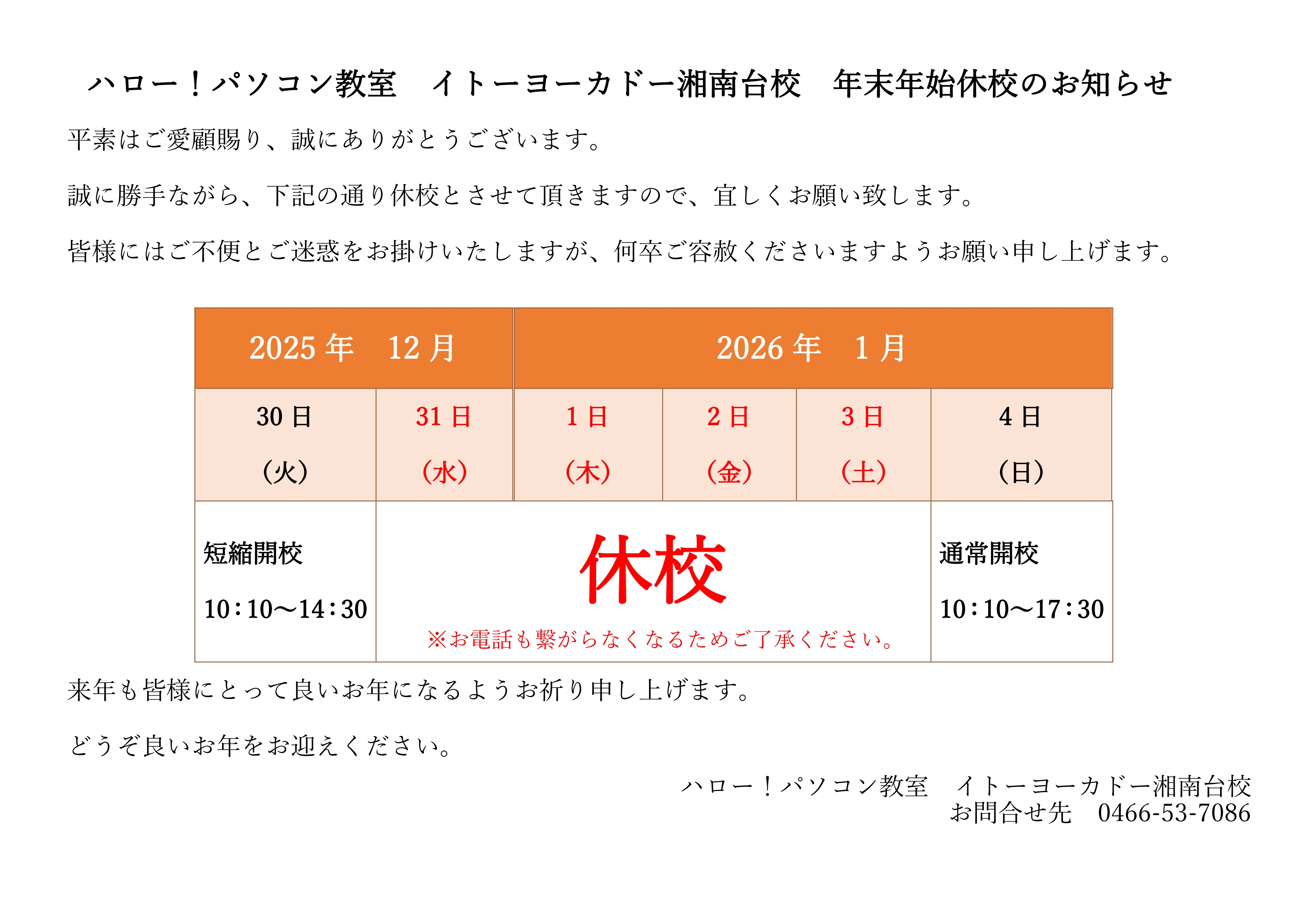 ハロー!パソコン教室イトーヨーカドー湘南台校、
